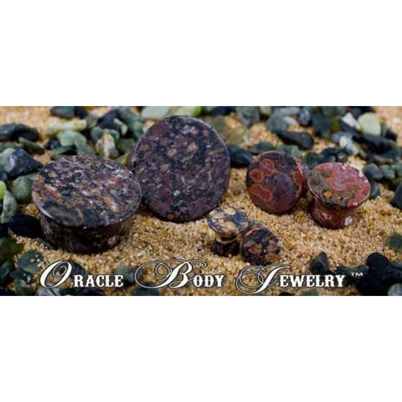 These mayan double flare leopardskin jasper plugs are made by Oracle Body Jewelry. Mayan flares feature a considerably larger front flare that better displays the character of each material, especially in smaller sizes. Choose your size below.8g to 6g = we