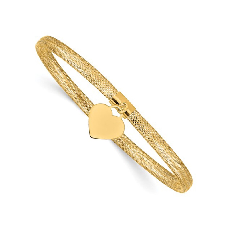 Lightweight Heart Charm Stretchable Bangle Bracelet (14K)