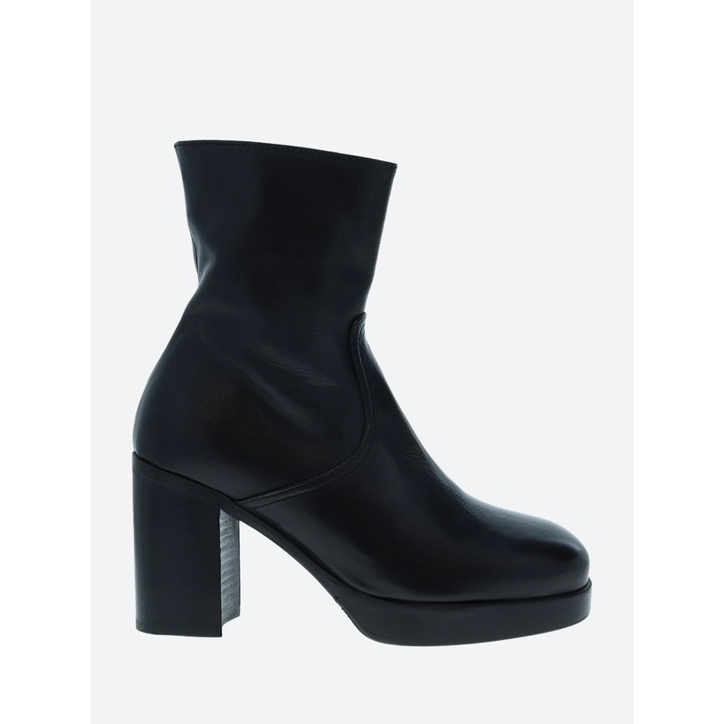 A sublime combination of 70s and 90s London style. With perfect proportions these boots are super comfortable and made to last.Fitted ankle bootInside zip closureLeather insoleSlightly squared off toeMeasurements:76 mm heelMaterialsUpper soft natural leath