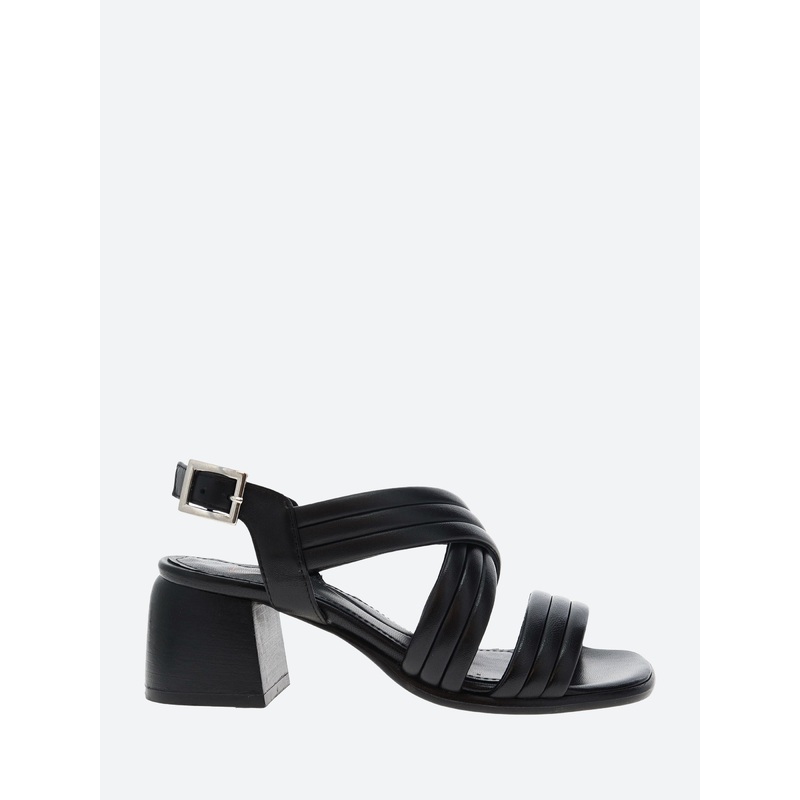 Open Closed sandals with wide interlaced straps. Made from black Italian leather for a timeless look.Crossover strapsAdjustable ankle strap with buckle closureOpen toeMeasurements:60mm heelMaterialsUpper: leatherLining: leatherOutsole: leather with rubber