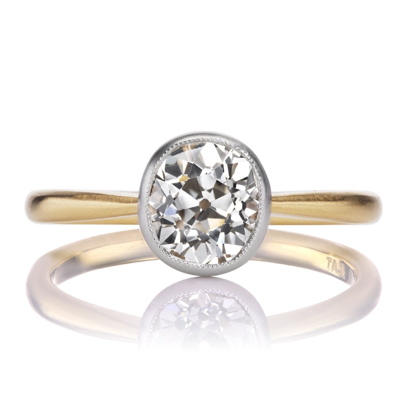 1.32 Carat Old Mine Cut Diamond in Two Tone Bezel Setting with Millegrain