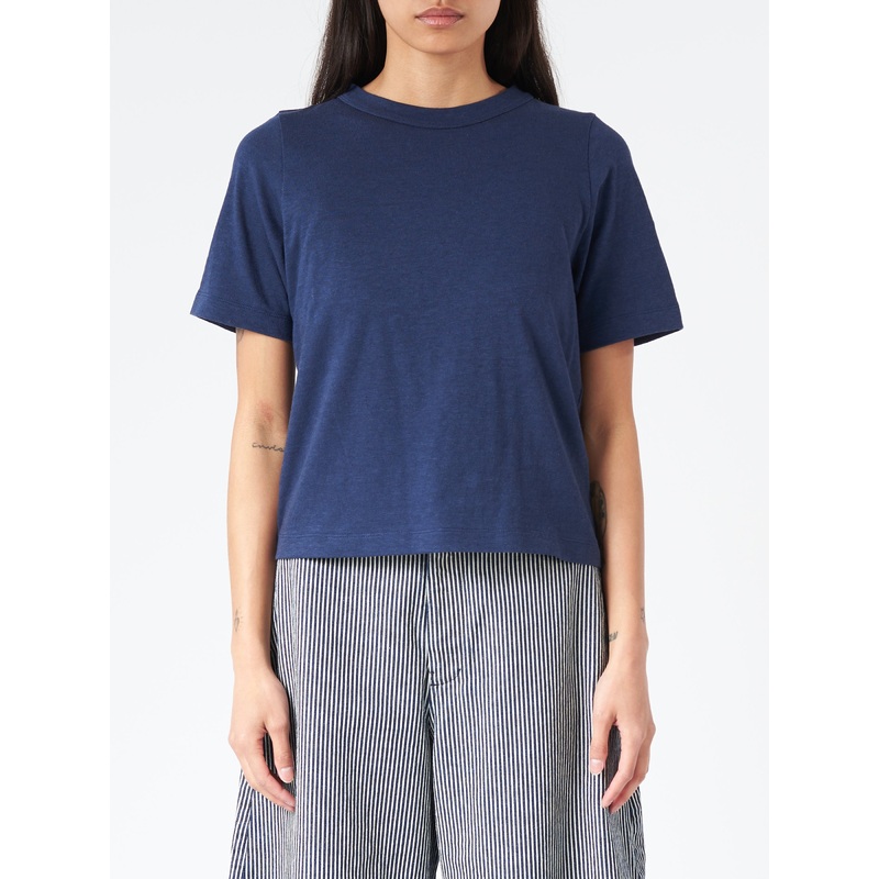 A simple, boxy crewneck t-shirt that's gentle to the touch, made from an elevated cotton-linen blend fabric.Crew neckShort sleevesBoxy fitMaterialsFabric Content: 85% cotton, 15% linenMade in JapanSize GuideBella wears size 1. Model is 5'7"; bust 32"; wais