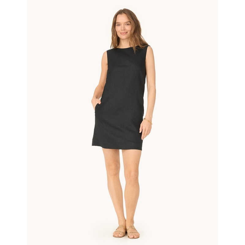 it doesn’t get easier than this. cut for a classic shift silhouette from crisp, breathable linen, this dress is an effortless go-to.