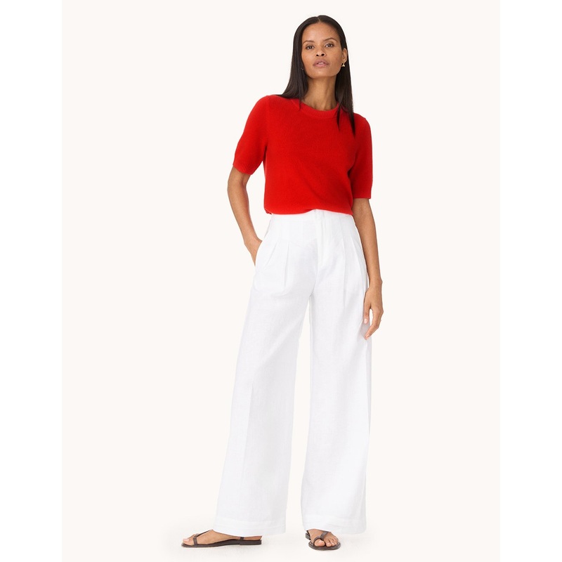 looks like tailoring, feels like luxury. we designed this trouser from crisp, breathable linen, and cut it for a slightly wide-leg fit.