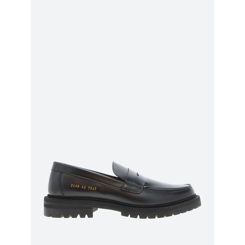 Common Projects leather loafers packed with elegance and sophistication. Handmade in Italy, constructed using high-sheen calfskin leather for a luxurious look.