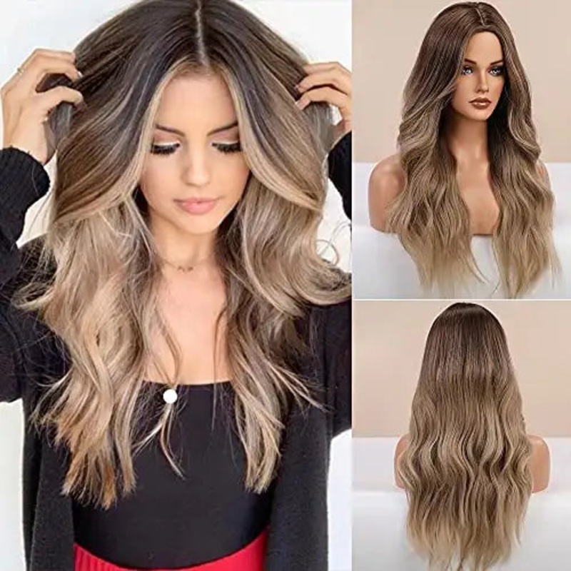Long Middle Parting Hair Wig Dark Brown to Light Brown