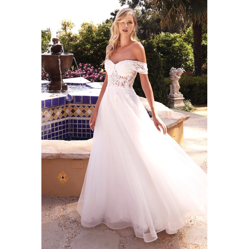 Long off shoulder tight corset wedding dress
