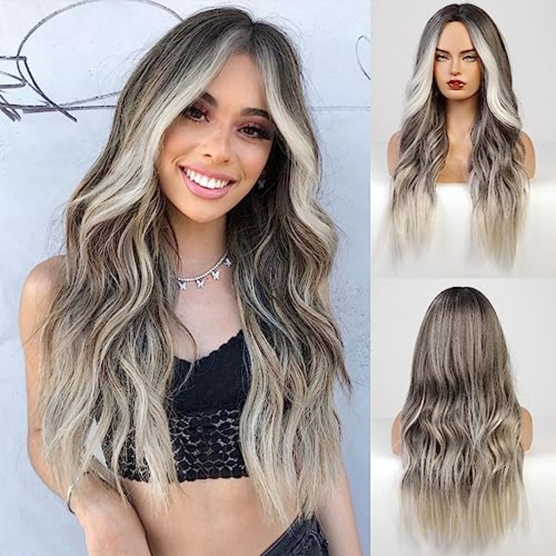 Long Ombre Blonde Gray Wavy WigUnleash your inner goddess with our stunning long wavy wig crafted from high-quality heat-resistant synthetic fibers. The magic of this wig lies in its intricate lace front, designed to create a flawless, natural hairline tha