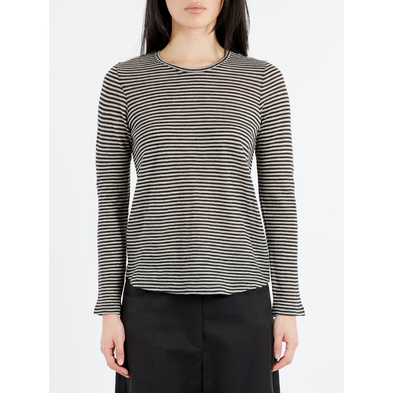 The distinctly sporty taste of the striped pattern enhances the versatile and casual style of the long-sleeve T-shirt. The classic striped design in seasonal hues enriches the soft jersey of pure virgin wool, a warm fabric with a smooth and comfortable feel.