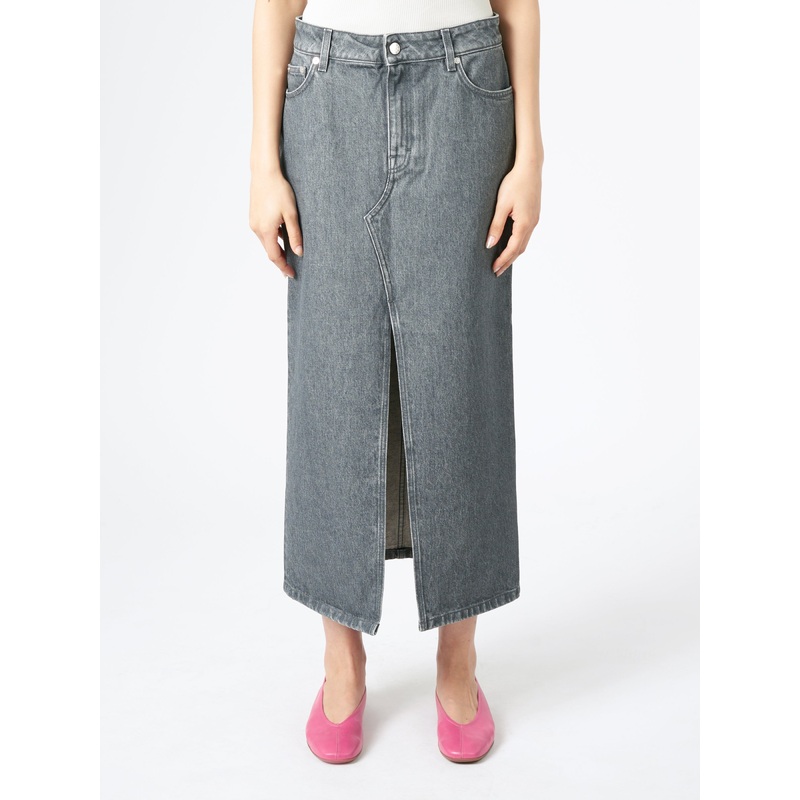 Destined to become your favourite denim skirt, this style from Filippa K is cut from a rigid organic cotton in a versatile mid-grey wash. With a mid-rise waist and slim fit, it has a classic five-pocket design and high center front slit.