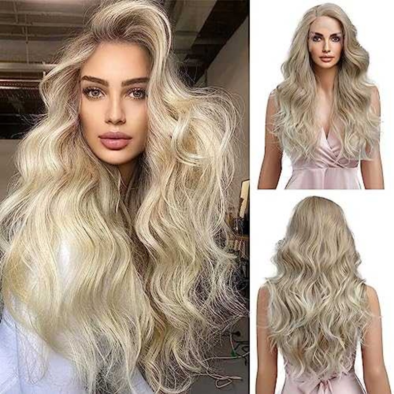 Long Wavy Blonde Wig with Side PartThis extra long wig is the perfect combination of style and comfort. Crafted with Japanese Kanekalon fiber, it boasts a natural and realistic looking scalp, with extra-long natural waves in a stunning blonde ombre colour.