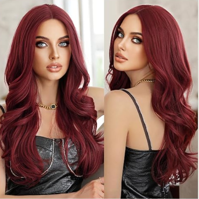 Long Wavy Red Wig Middle Part Lace FrontExperience the epitome of quality with our meticulously crafted wig, constructed from premium heat-resistant synthetic material. This wig boasts durability, a soft touch, and a natural appearance that mimics the move