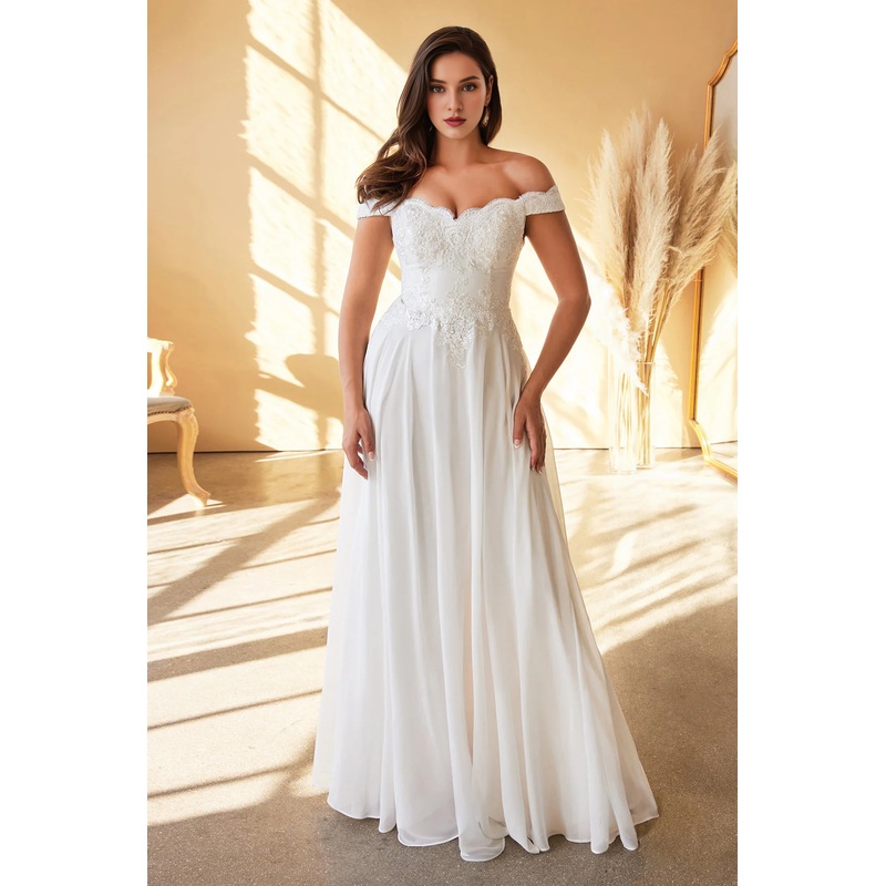 3D floral decal long gray white strapless wedding dress