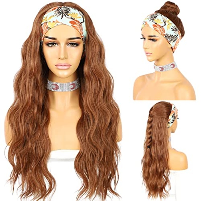 Loose Body Wavy Extra Long Headband WigSynthetic headband wigDensity: 150%Velcro snapping design is easy to secure your wig, can show your own natural hairline.You can make a ponytail or bun according to your personal preference,Length: About 26 InchesWeig