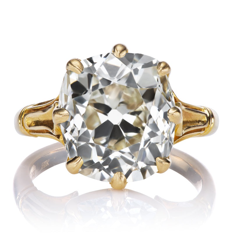 8 Carat Old Mine Cut Diamond in Gold Antique Inspired Setting