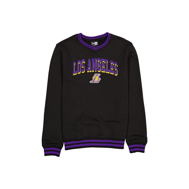 The Los Angeles Lakers Sport Night Black Crewneck features a chenille applique Lakers wordmark above an embroidered team logo at the front.