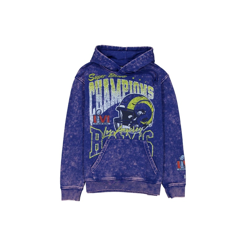 The Los Angeles Rams Sport Classics Washed Hoodie features a screen-printed Rams graphic at the front with kangaroo pockets and adjustable drawstrings at the hood.