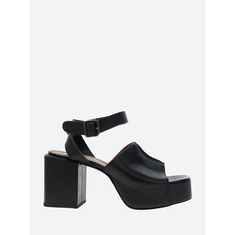 Moma simple sandal with an adjustable buckled ankle strap. Complete with a stacked heel and pebbled finish.Wide strap at the vampAdjustable buckled slingbackCenter slit detail across the toe strapSlip-on styleLeather footbedOpen toeMeasurements:75 mm heelM