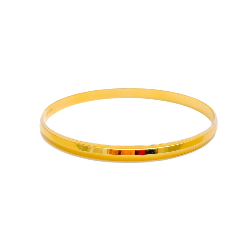 This lovely fine men's bangle, finely wrought from 22k gold and weighing 21.6 grams, gleams with a polished yellow gold finish. It is tailored to a bangle size of 2.10, with an opening diameter of 2.7 inches, ensuring a comfortable fit for its wearer. Idea