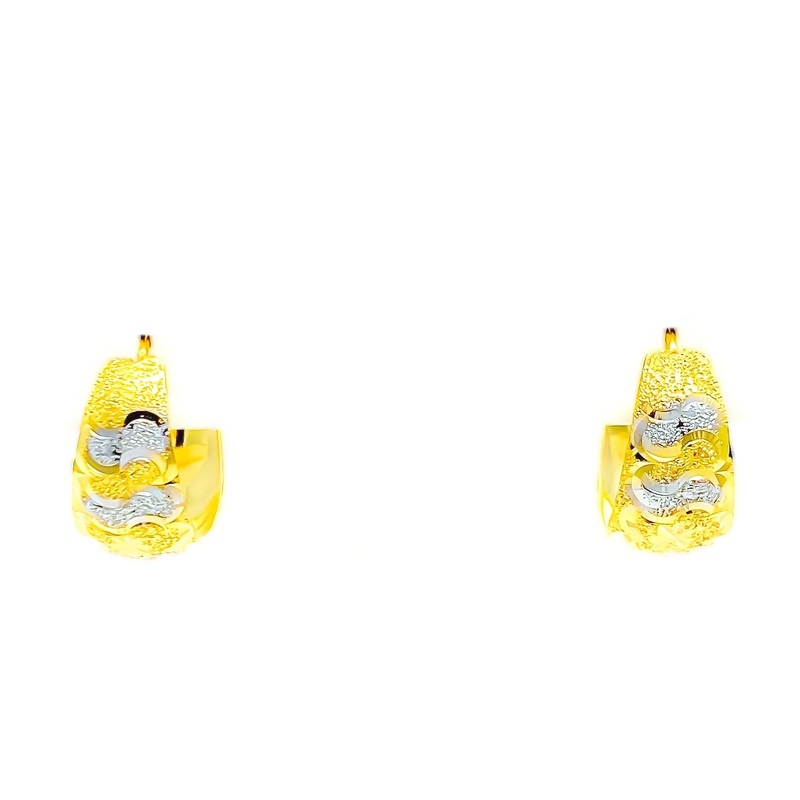 These 22k gold Bali earrings, weighing 4.1 grams, combine a radiant yellow gold finish with a two-tone design for a distinctive and stylish look. With a diameter of 0.3 inches, these hoop-style earrings offer understated elegance and versatility, perfect f