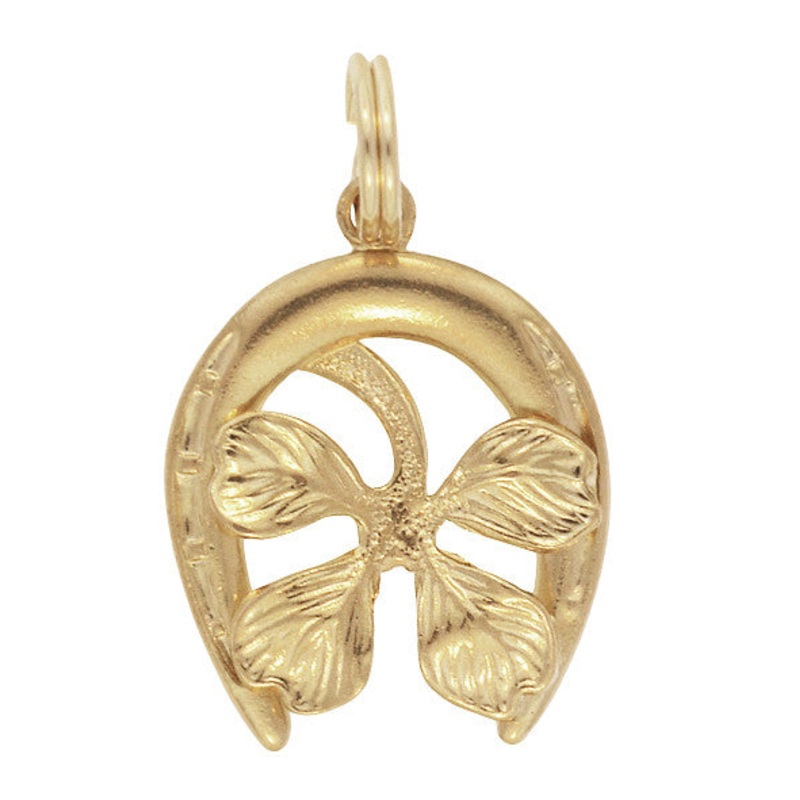 Lucky 4-Leaf Clover in Horseshoe Charm in 14 Karat Yellow Gold