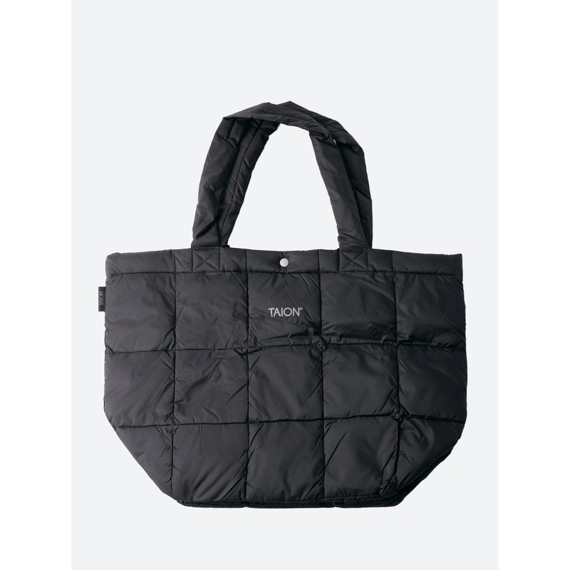 TAION down tote bag with a light, soft, fluffy and voluminous feel.Dual carry handlesYKK snap button at the center of the bag openingLogo print650 fill power400T nylon taffeta fabric with water-repellent treatmentMaterialsShell: 100% nylonLining: 100% poly