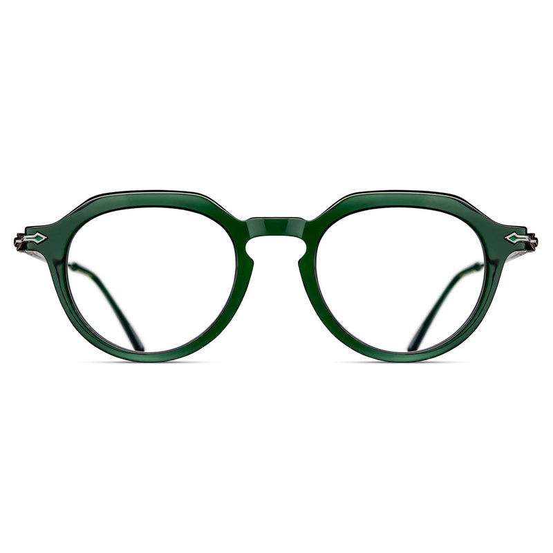 The Matsuda Eyewear // M2057 is a forward thinking crown pantos that melds past and future through a harmonious blend of Japanese acetate and titanium. A subdued round lens shape is emboldened by a beveled sculpted brow, complemented with contrasting titanium temples.Handmade in Japan.Includes Matsuda box, case, and cleaning cloth.