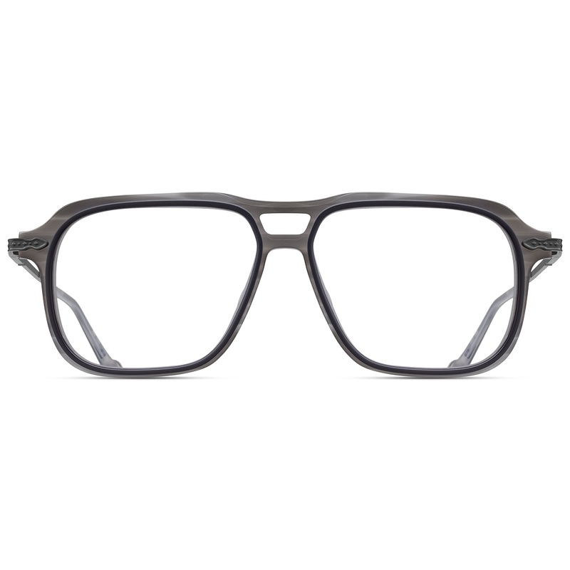 The Matsuda Eyewear // M2062 is a modified navigator made of aged Japanese acetate and titanium. The front is hand-crafted of laminated Japanese acetate while subtle placements of Matsuda detailing can be found on the temples. Handmade in Japan. Includes Matsuda box, case, and cleaning cloth.