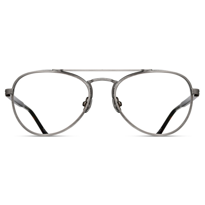 The Matsuda Eyewear // M3116 is an adaptable take on the aviator style frames that arose from pilot’s glasses in the early 20th century. This frame features asleektitanium frontpaired with Japanese acetate temples. Handmade in Japan. Includes Matsuda box, case, and cleaning cloth.