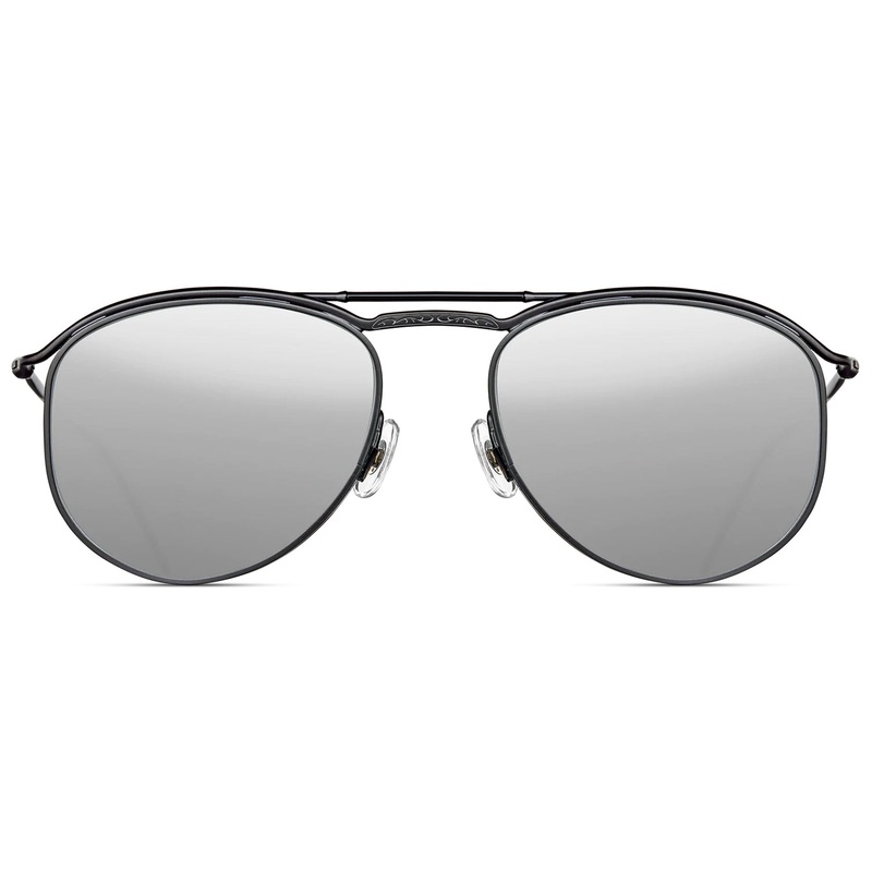The Matsuda Eyewear // M3122 utilizes an adventurous top bar and intricate titanium side shield with a dashing aviator eye shape to access the beauty of the past and the inspiration of the future in one stunning sunglass. Handmade in Japan. Includes Matsuda box, case, and cleaning cloth.