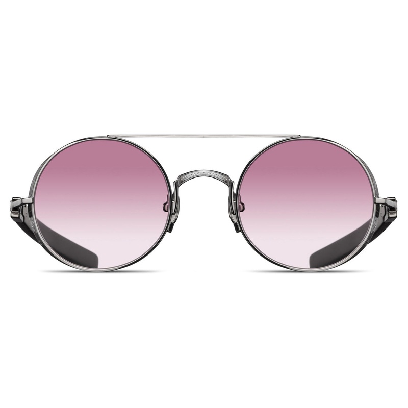 The Matsuda Eyewear // M3128 utilizes a bold round lens shape and intricately carved precious metal side shields to create a statement piece that highlights individuality and style. Handmade in Japan. Includes Matsuda box, case, and cleaning cloth.