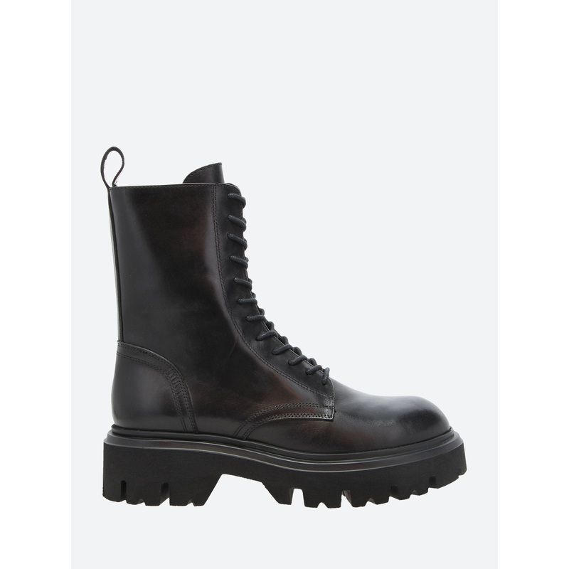 gravitypope Madira boot with a streamlined upper and minimal detailing. A modern take on the traditional combat style maintains its classic look. Sits on a chunky lugged sole.High ankle heightTwelve eye lace-upExposed side zip closurePull loop at the heel