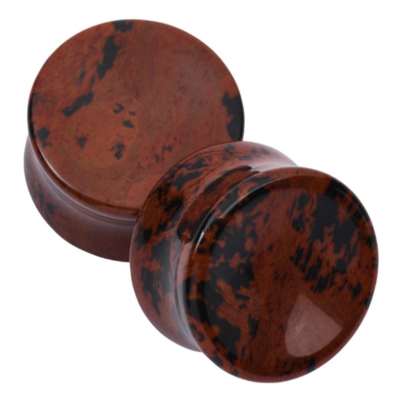 These double flare concave mahogany obsidian plugs have a wearable area of 3/8" between flares. Mahogany obsidian is a natural glass obsidian with iron inclusions characterized by rust colored patches. Choose your size below.