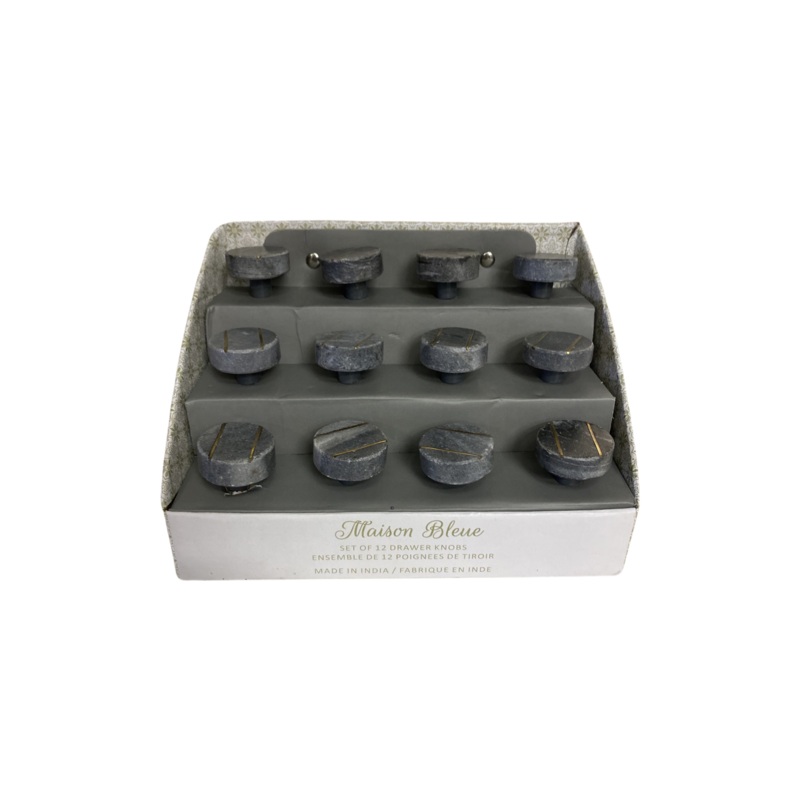 New.Stone drawer knobs with gold stripped accents.Quantity 12 knobs.We are so excited to let everyone know that our Pacific Grove store is now open!! We are offering curbside pickup and local delivery for qualifying online orders. We appreciate your order!