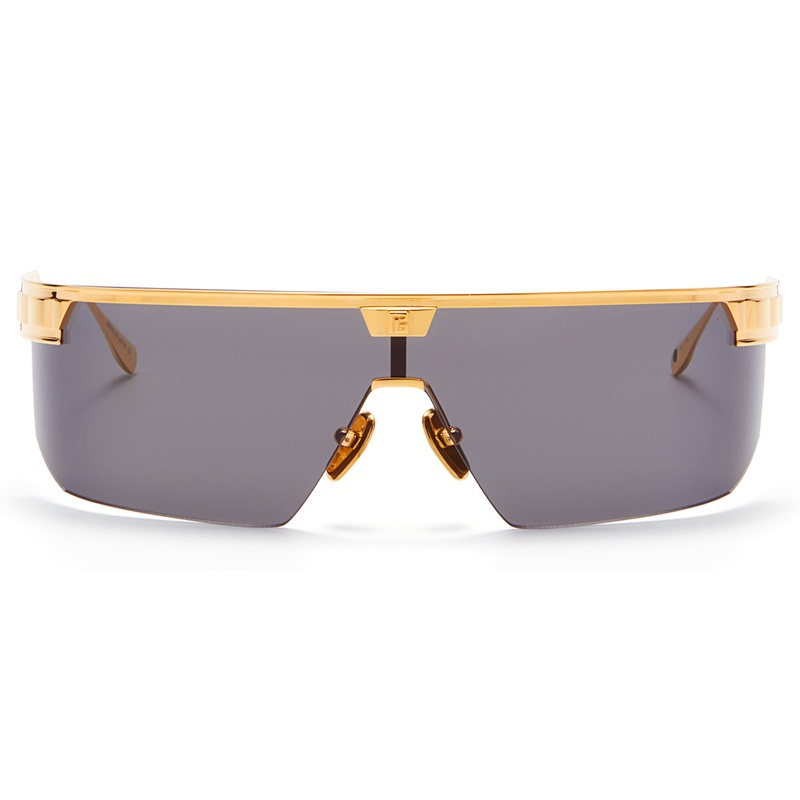 As its title makes clear, the Balmain Major has achieved a high rank. The geometric shield, with its straight browline and powerful-yet-featherweight Japanese titanium frame, displays a pair of special temple ornaments: eye-catching, tactile chains crafted in yellow and rose gold, as well as one special jet-black design. These embellishments were inspired by aiguillettes, a distinctive type of military gilded cords, which have adorned high-ranking French uniforms since the Renaissance. A symbol of great honor, awarded for only the most impressive of accomplishments, the dress-uniform cords have served to recognize great loyalty for centuries. Balmain Eyewear has adapted this singular emblem of fidelity as a mark of adherence to the inclusive and progressive values shared by all members of the Balmain Army. Handmade in Japan. Includes Balmain box, hard case, soft case, cleaning cloth, and 1-year manufacturer warranty.