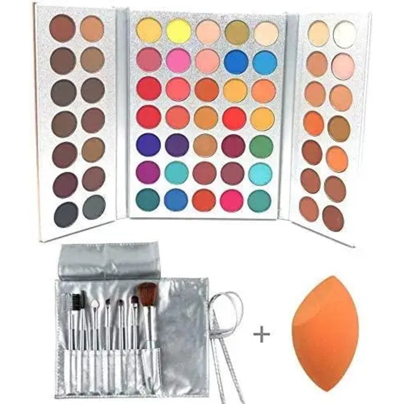 Eyeshadow Palette, Makeup Brushes Set, Sponge Blender Pigmented 63 Colour Matte Shimmer Soft Cream Powder