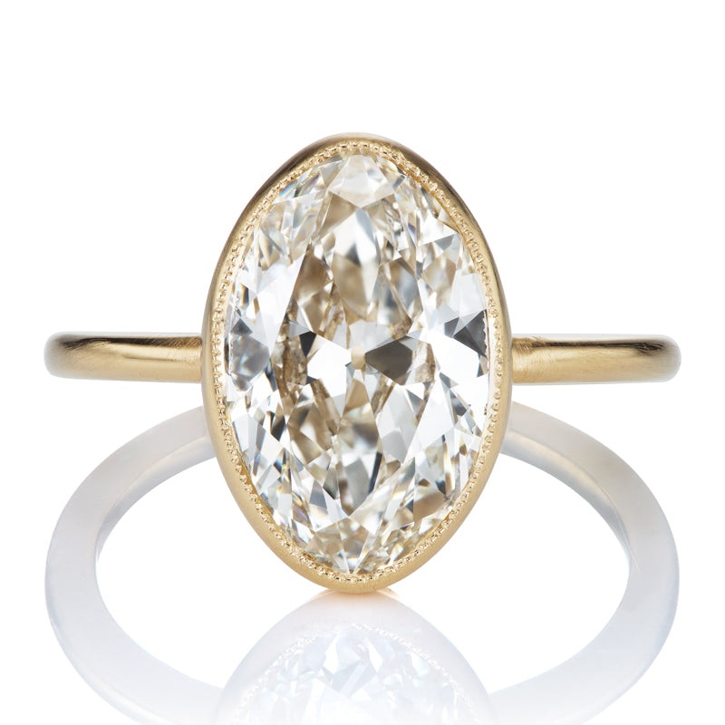 3.56ct Antique Moval Cut Diamond in 18kt Gold Bezel Setting