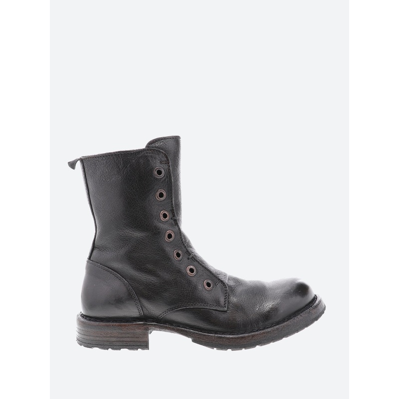 These combat boots from MOMA feature a size zipper closure and are designed to be worn without laces, subverting the usual style.Ankle heightSilver eyeletsSize zip closureHeel tabTonal stitchingRound toeStacked leather heelFree Gift with Purchase!Claim you