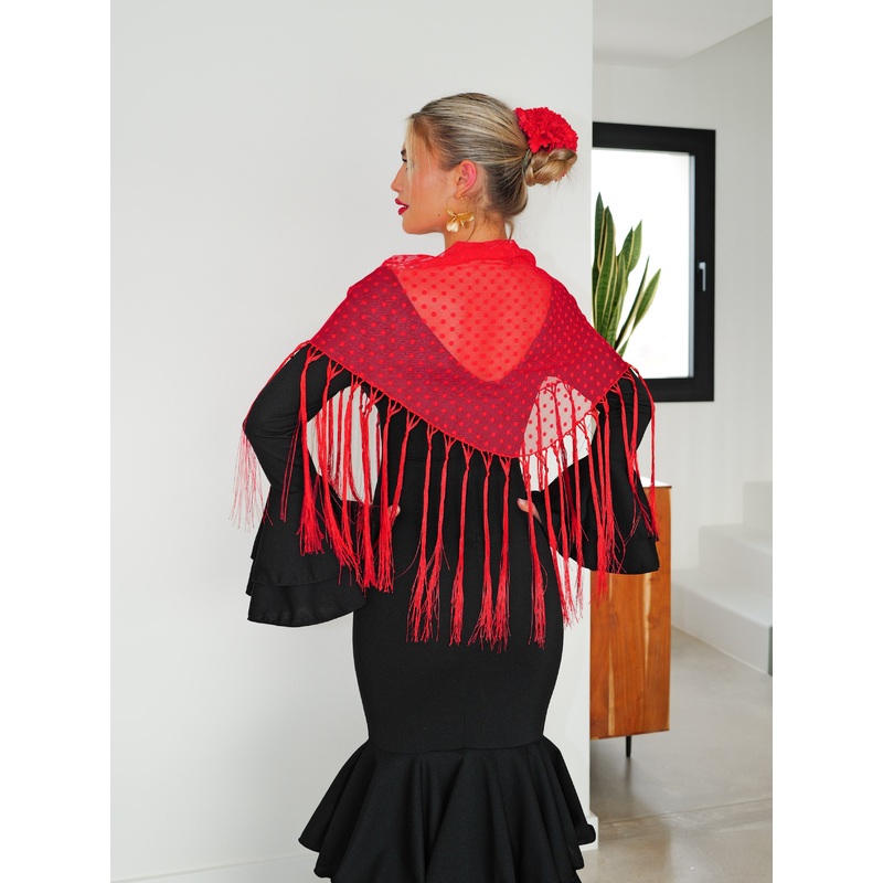 Mantn de flamenca de satn y con bordado y flecos.