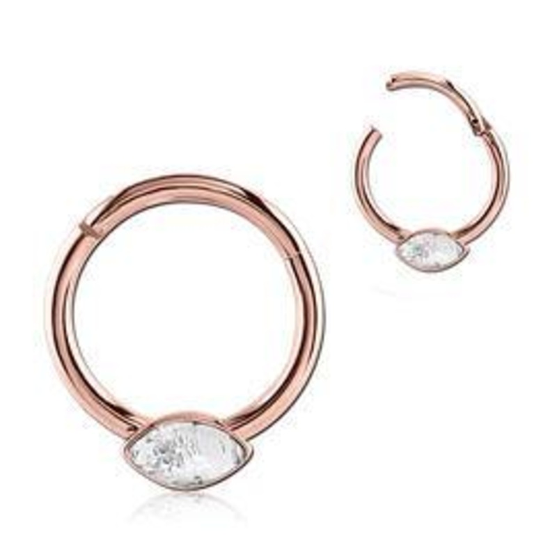 Marquise CZ Rose Gold Hinged Segment Ring 16g – 5/16″ diameter (8mm) Clear Rose Gold Stainless