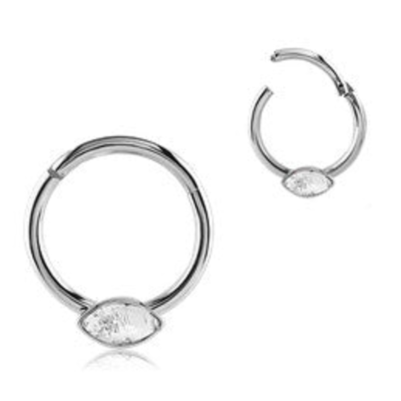 Marquise CZ Stainless Hinged Ring 16g – 5/16″ diameter (8mm) Clear Stainless Steel