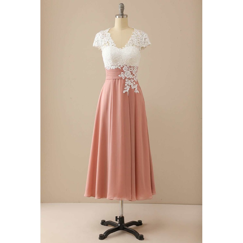 Mature V-neck lace chiffon hat sleeves Mother of the Bride Dress