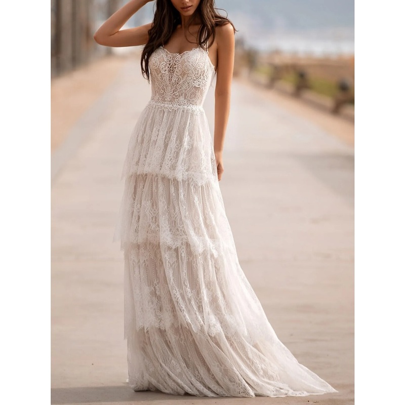 Mature Wedding Dresses A-Line Camisole Sleeveless Sweep / Brush Train Lace Bridal Gowns With Pleats Solid Color