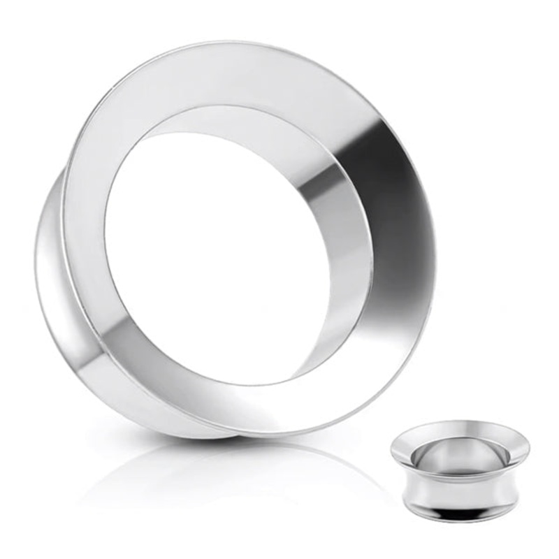 These double flare mayan tunnels are made from 316L stainless steel. The mayan design has a larger front flare. They have a wearable area of 5/16″ between flares. Choose your size below.