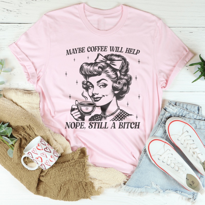 Perk up your wardrobe with the candid charm of our “Maybe Coffee Will Help Nope Still A B*” T-shirt. This cheeky tee is a nod to those mornings when even coffee can’t tame your fierce spirit. Crafted from soft, breathable fabric, it ensures all-day comfort, whether you’re bustling through work or winding down at your favorite caf.