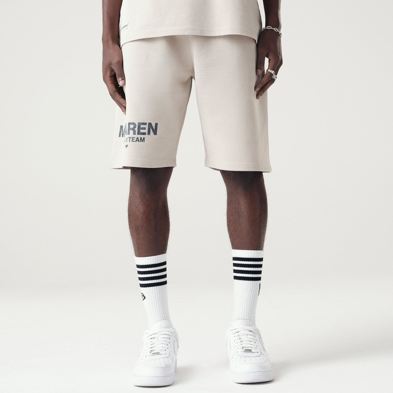 The McLaren Formula 1 Team Washed Stone Shorts feature a screen-printed McLaren wordmark at the front right leg, a vertical Forever Forward print at the rear, and adjustable drawstrings.