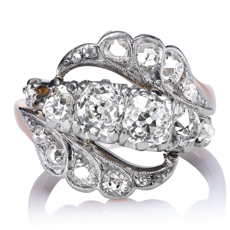 Vintage Old Cut Diamond Rose Gold and Platinum Two-Tone Twist Ring