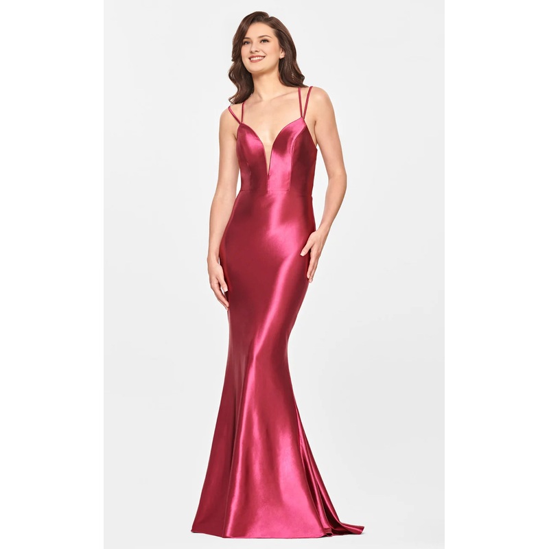 Be the first to review “Mermaid deep V-neck satin thin shoulder strap and floor length evening dress”