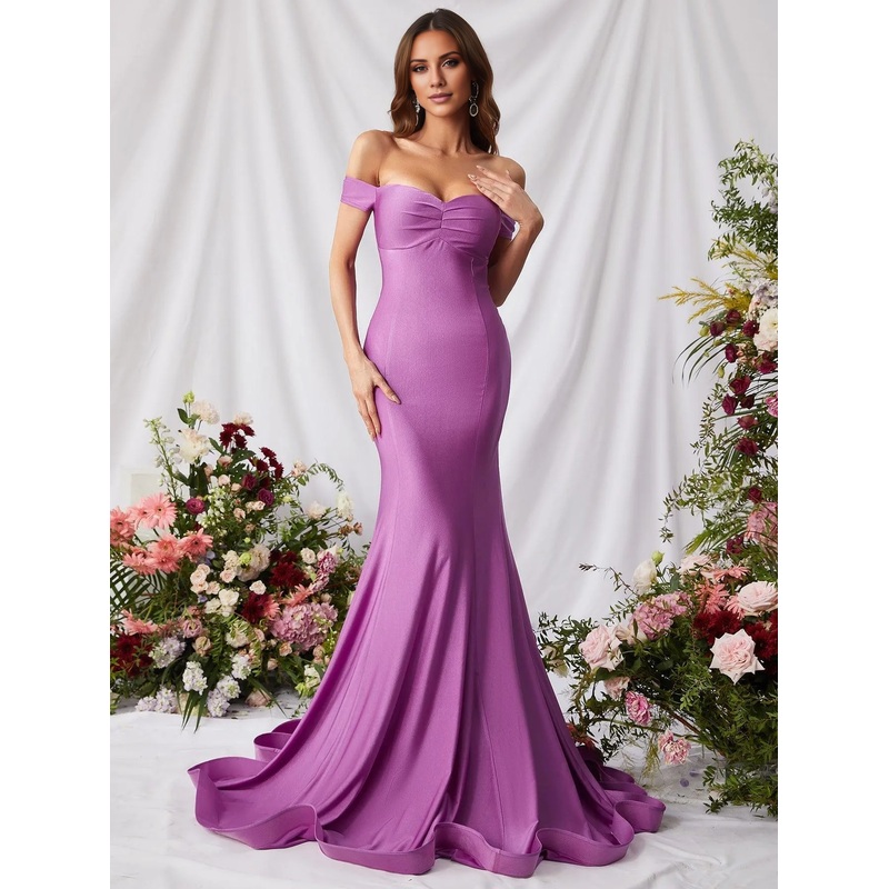 Mermaid off shoulder back zipper and floor length formal dress