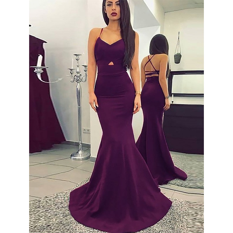 Mermaid Spaghetti Straps Sleeveless Sweep/Brush Train With Ruched Crepe Dresses